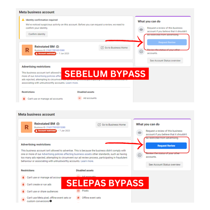 Bila dah masuk fasa request review, ia bukan lagi tanggungjawab kami. Kami cuma bantu anda bypass identity dan fix identity confirmation failed sahaja.